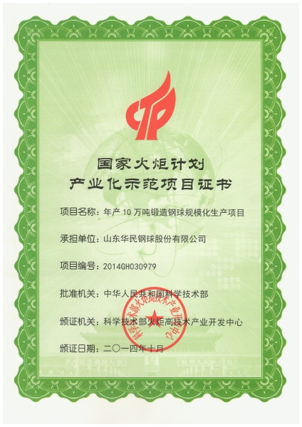 火炬計劃項目證書