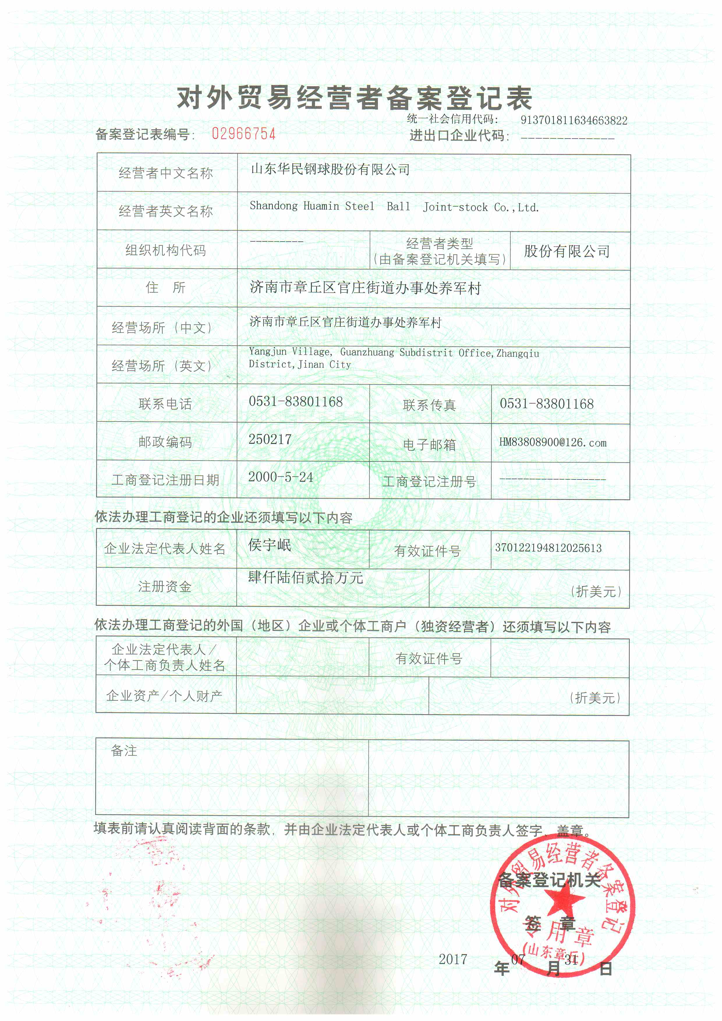 對外貿(mào)易經(jīng)營者備案登記表 1